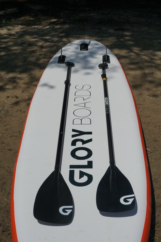 Wie meistens kann es auch bei diesem SUP Board Set Sinn machen in ein hochwertigeres Paddel zu investieren. Es wird im Allgemeinen unterschätzt was ein gutes Paddel an Fahrspaß (vor allem bei Touren) bringt. Wir haben daher von Glory Boards das häufig zusätzlich verkaufte Carbon-Nylon Paddel SLEEK Carbon ebenfalls zum Test bekommen.